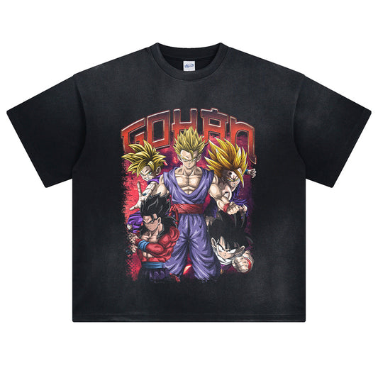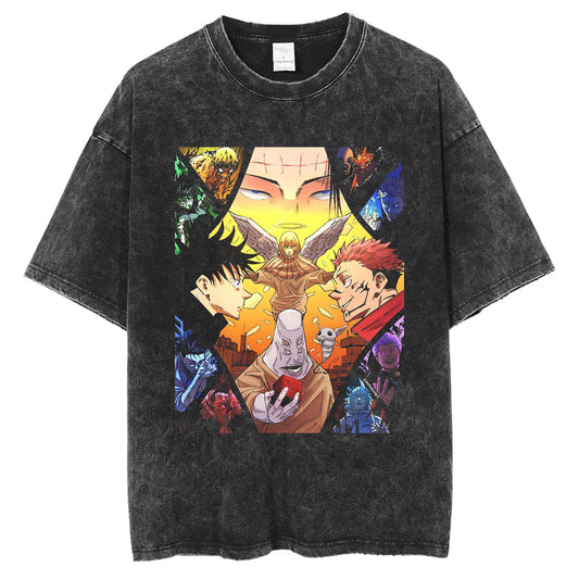 Anime Printed Oversize T-shirt Street Wear Men's Washed VintageT T-shirt Summer Cotton Sportswear