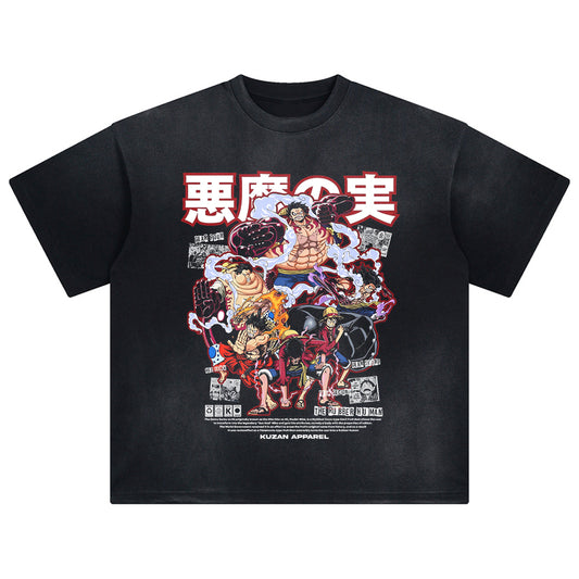 Anime DTG Printed T-shirt Men's Summer Oversize Top Short Sleeve Vintage Washed Shirt Cotton