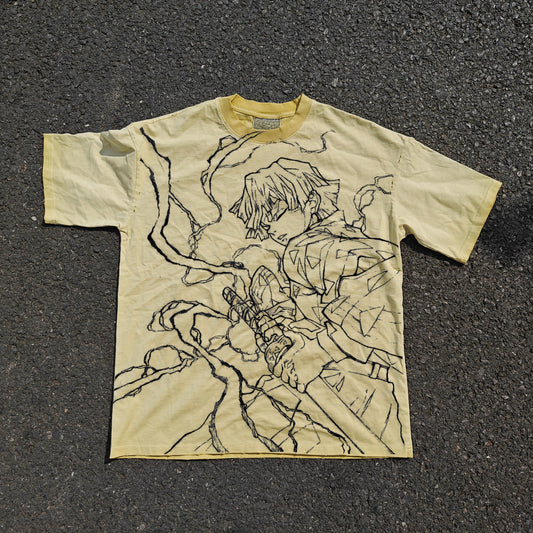 Anime Demon Slayer Pattern T-shirt Men's Vintage Washed Cotton Top Tees